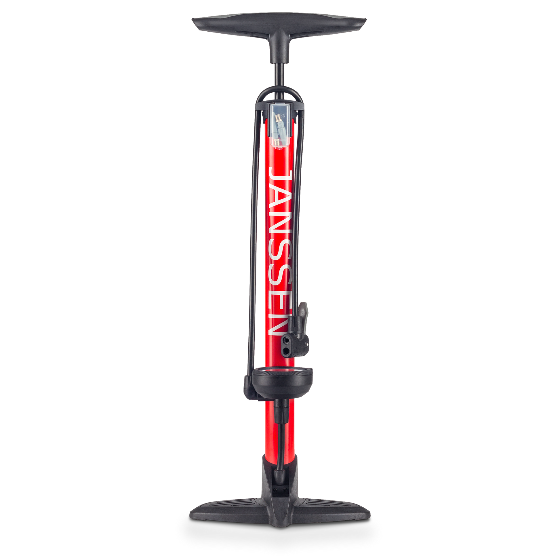 An easy-to-use floor pump with integrated gauge for fast and efficient tyre inflation. Featuring a long flexible hose, dual connector with locking lever and ergonomic comfort handle.